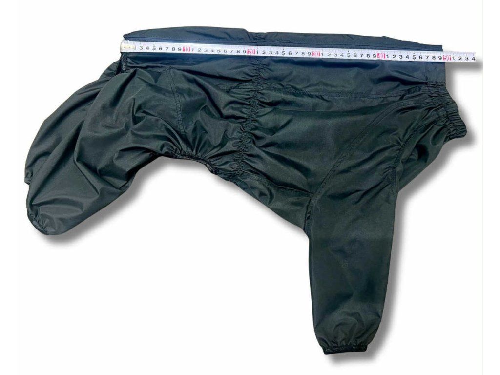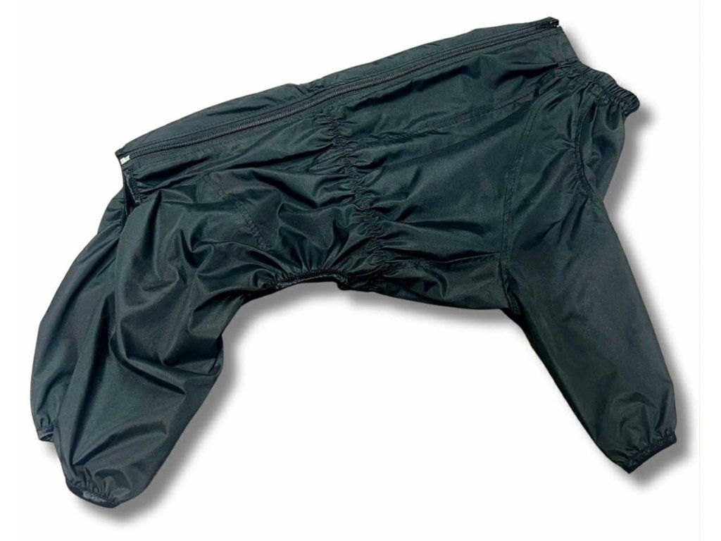 Okolo krku je všitá guma pro lepší přizpůsobení, v pase je kombinéza stažená gumičkou a další gumička se nachází také vzadu a pod břichem, což zajišťuje pohodlné nošení a dobré držení na těle psa. Nohavice jsou zakončeny pevně všitou gumičkou, která zabraňuje vyhrnování.