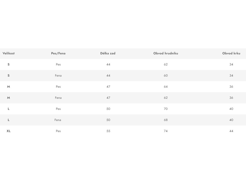 Míry jsou měřené v nenataženém stavu látky, tudíž obvod hrudníku a krku je pružný. Délka zad je ale pevná.