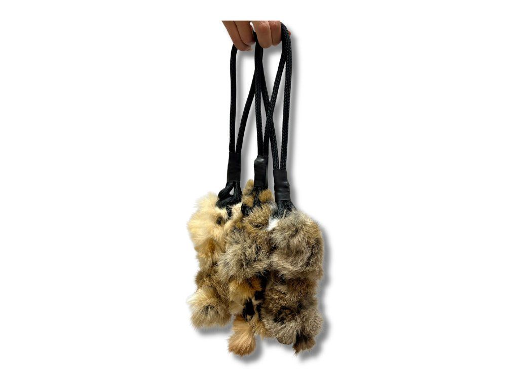 Do pleteného přetahovadla z PPV šňůry je zapletený proužek pravé králičí kožešiny, takže je toto přetahovadlo pro psa velmi lákavé a atraktivní. Můžete použí buď jako přetahovadlo a nebo jako aport. Nedoporučujeme nachávat psovi bez dozoru, možnost rozkousání.