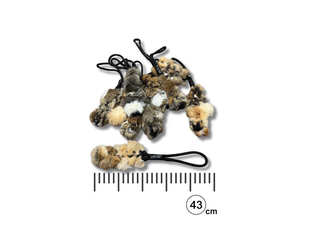 Materiál: Polypropylenová šňůra, pravá králičí kožešina (vyčiněná)