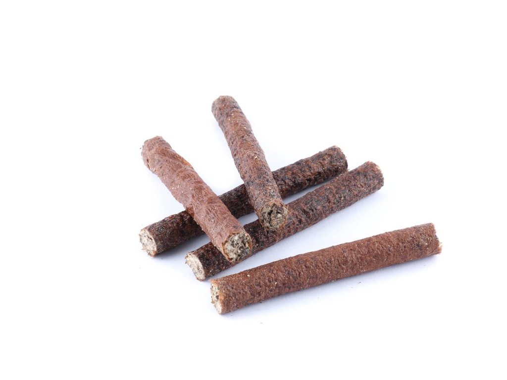 Sušené, mleté maso, které nabízíme je vyrobeno z odřezů a zbytků srnčího masa při jeho zpracování. Tyto velmi kvalitní kousky masa se semelou, zabalí se do přírodního kolagenového střívka a vytvarují se do tzv. rollsů a suší horkým vzduchem.